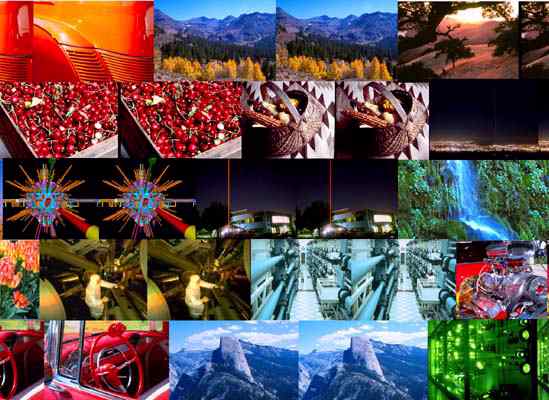 Lasers, hot cars, waterfalls, sunsets, Monterey, and aspens are some of the subjects on this CD containing more than 300 stereo photos, for viewing on your Pentium PC. Sample image collage (108k jpeg). Smaller sample (37k jpeg). Stereophotography by John Toeppen.Free DepthCharge software from VRex.com, and VRSurfer liquid crystal shutter ("LCS") glasses recommended. Common red/cyan anaglyph glasses or the cross-eyed method of freeviewing can also be used.