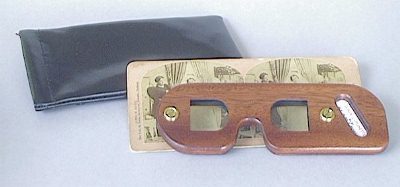 The viewer comes in a soft protective pouch (pouch material and color will vary) for protection of the fine wood and lenses when the lorgnette is not in use. (Of course you might have so much fun seeing how much better your stereocards look that you won't be able to put the lorgnette down!)